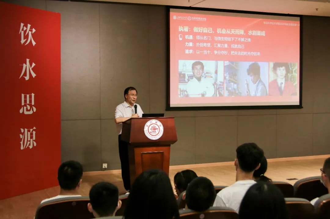 最后,邓子新寄语新生要在大学生活中找到自己的方向和道路,为祖国和人民做出贡献;寄语新生“逆境催人奋进,执著精彩人生,激情成就梦想,人文陶冶青春”,希望大家不畏逆境,执着追求,用自己的专业知识助力健康中国,做科研的追梦人,成为交大未来的骄傲。