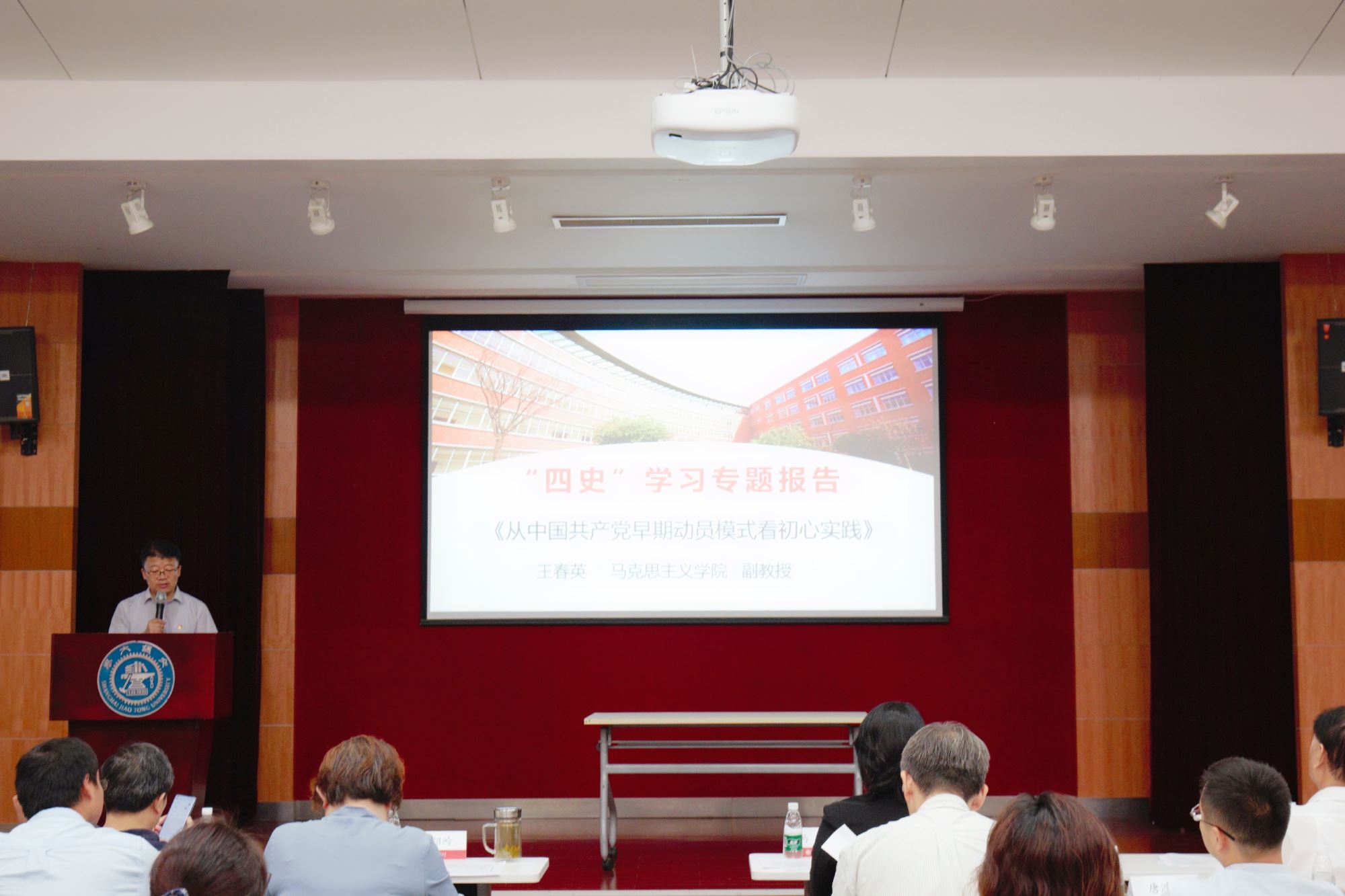 为深入贯彻习近平总书记关于深入学习党史、新中国史、改革开放史、社会主义发展史的重要指示精神,认真落实学校关于推进“四史”学习教育的工作安排,9月29日下午,必赢76net线路官网举办“四史”学习教育专题辅导讲座,邀请学院马克思主义学院王春英副教授以《从中国共产党早期动员模式看初心实践》为题,为学院党员代表授课。讲座由学院党委书记嵇绍岭主持。