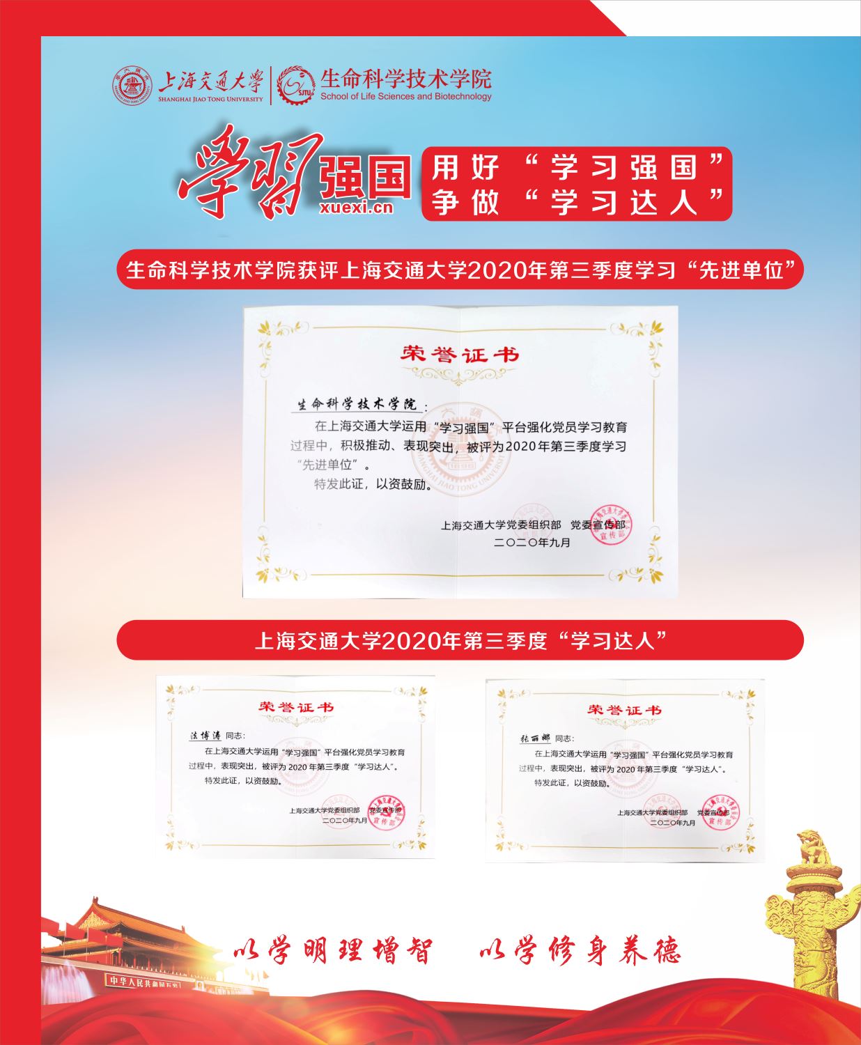 以学明理增智,以学修身养德。希望学院全体师生在第四季度再接再厉,主动利用“学习强国”平台强化知识储备,提升学习效果,养成“每日学习、定时学习”的好习惯,进一步加强自身思想认识,提升理论水平。