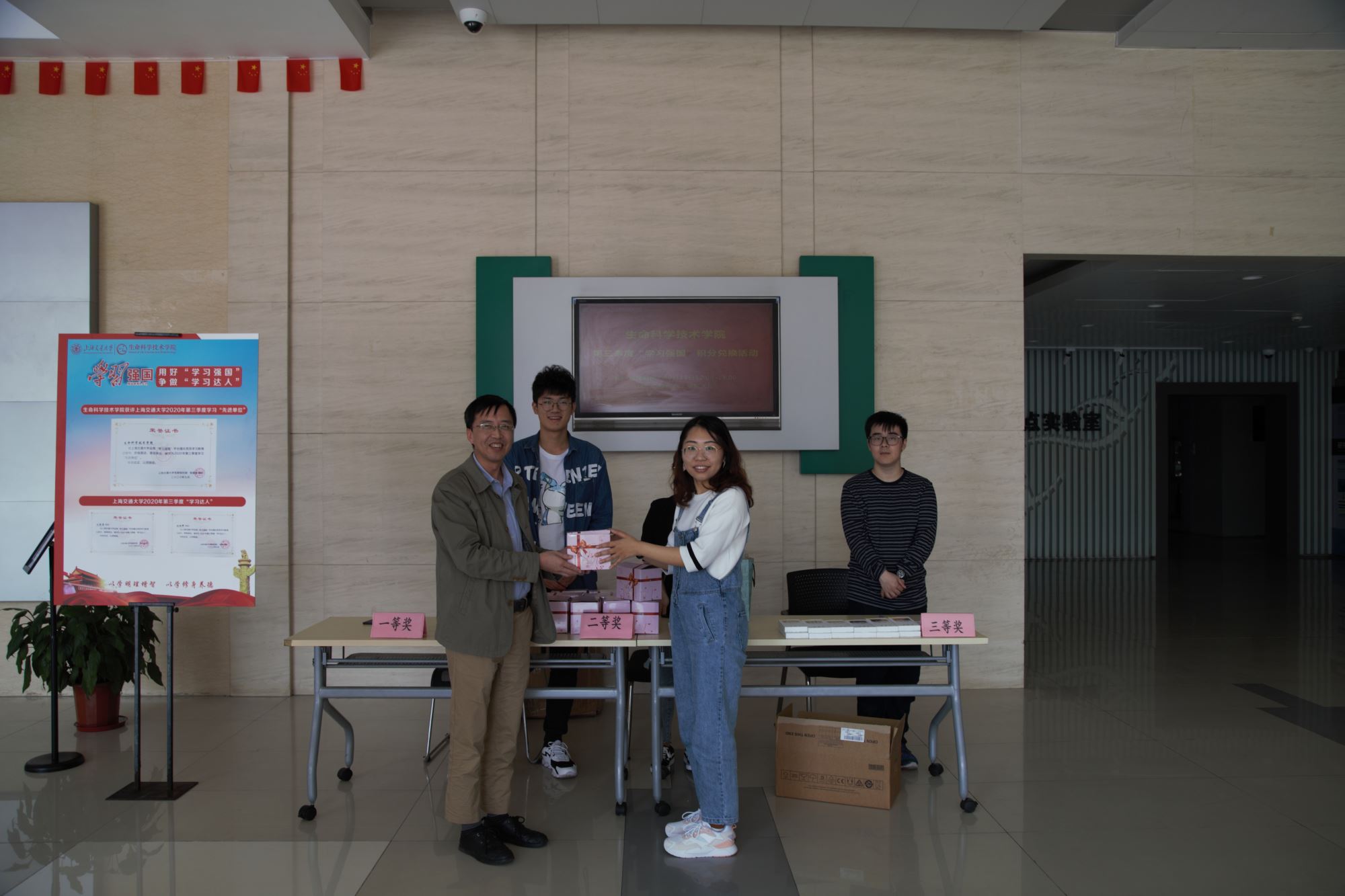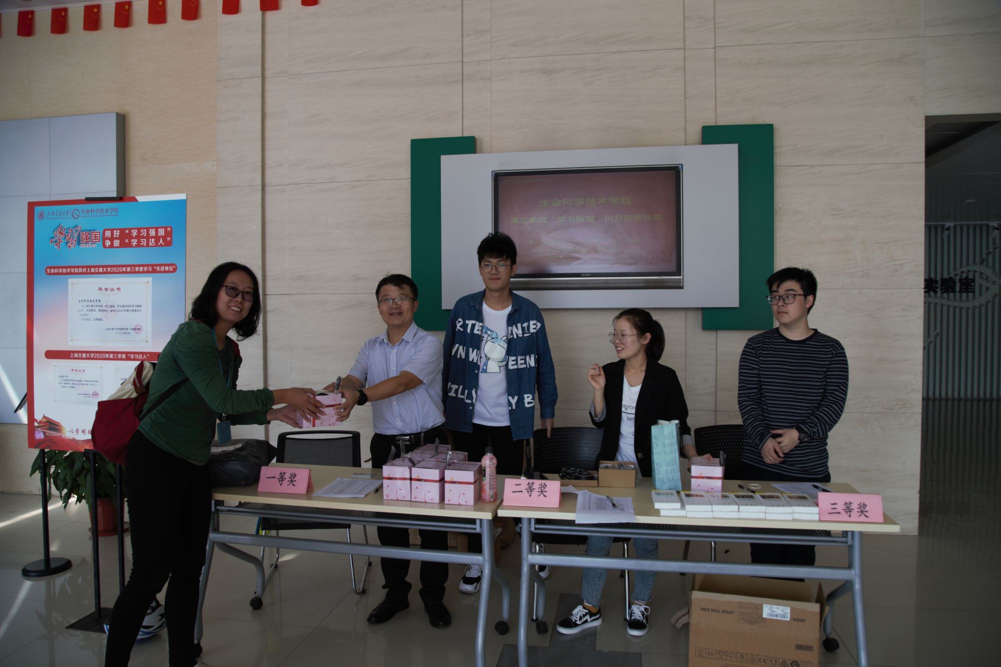 10月13日中午,必赢76net线路官网在学院大厅进行了“学习积分”纪念品兑换活动。活动中,学院党委书记嵇绍岭、党委副书记李文纯、副院长张晓君也来到现场,为师生颁发纪念品,并充分肯定了大家的学习热情,鼓励广大师生继续利用好“学习强国”平台,不断提升自身理论知识水平。学院师生经过一个季度的认真学习后,根据自身积分领取到了精美而实用的纪念品。