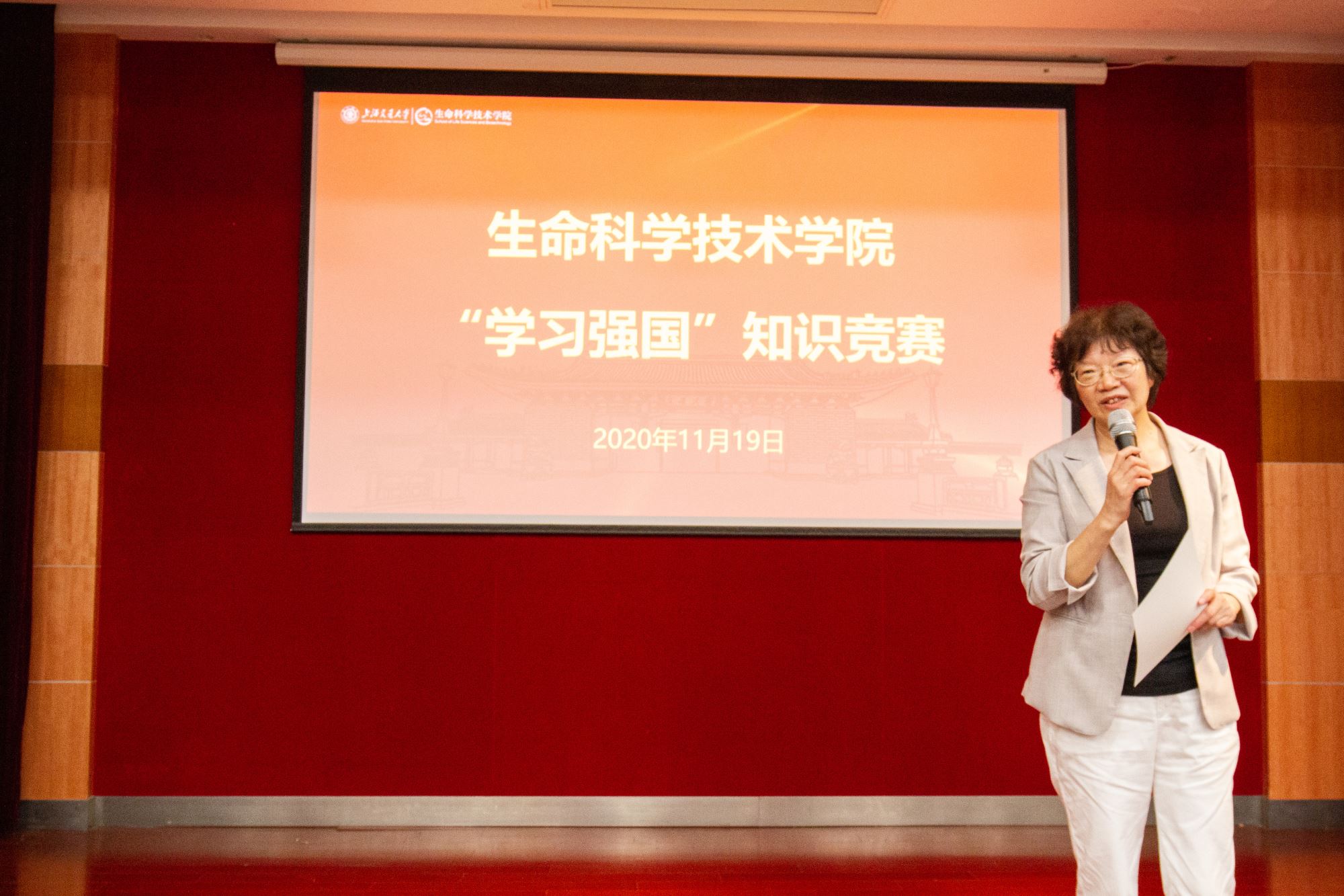 为深入学习贯彻习近平新时代中国特色社会主义思想和党的十九大精神,进一步创新师生党员教育载体和形式,推进“学习强国”平台的使用,11月19日,必赢76net线路官网 “学习强国”知识竞赛活动于生命药学楼树华多功能厅举办。本次活动由中共必赢76net线路官网党委主办,必赢76net线路官网学生党建研究会承办,学院党委书记嵇绍岭,党委副书记李文纯、王鑫,特邀党建组织员陆秀英,各党支部师生党员等近百人参加活动。