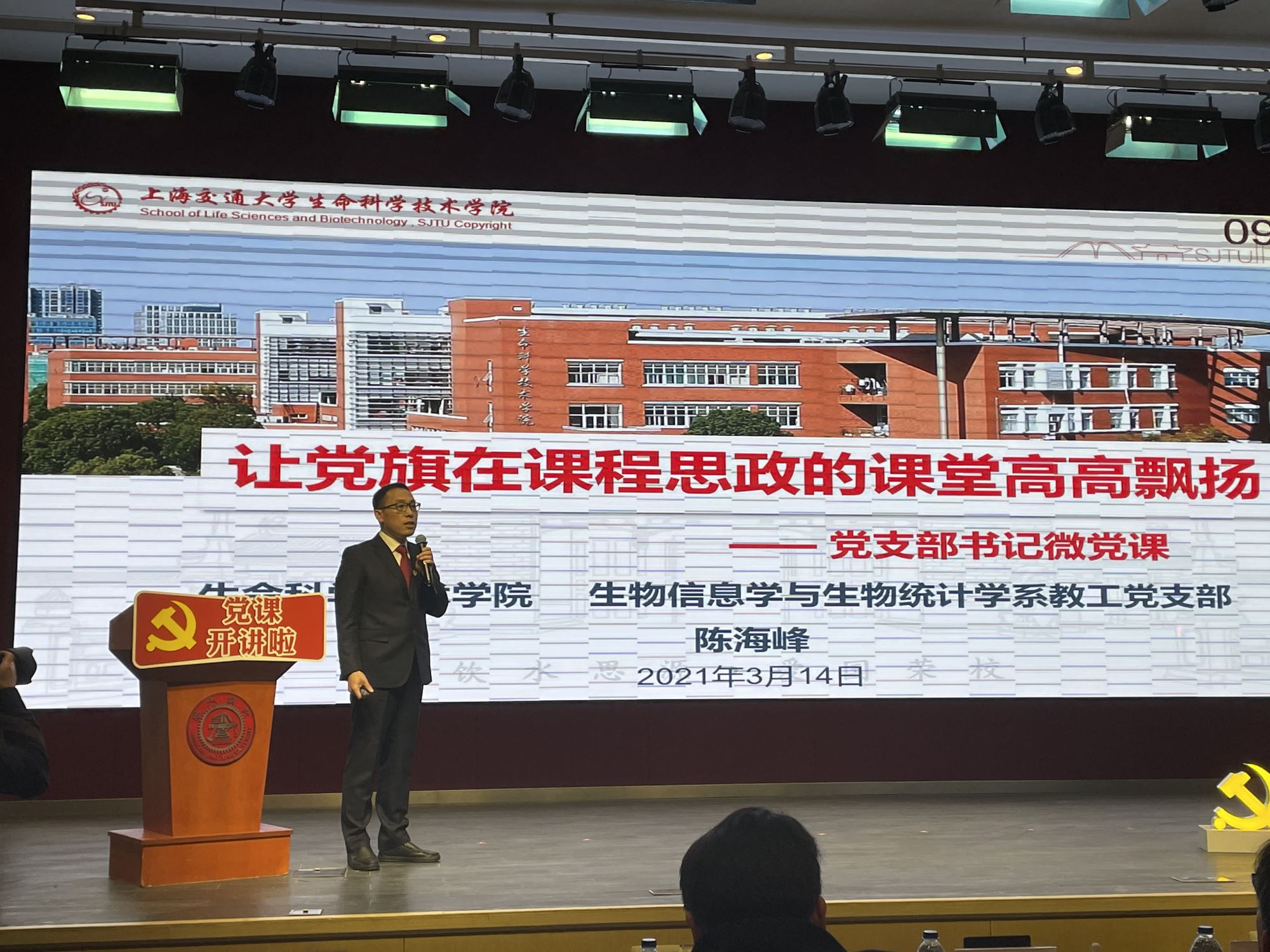 3月14日,必赢76net线路官网生物信息学与生物统计学系教工党支部书记陈海峰参加必赢76net线路官网“党课开讲啦”党支部书记微党课大赛,以“让党旗在课程思政的课堂高高飘扬”为主题讲述微党课,获评微党课大赛三等奖。