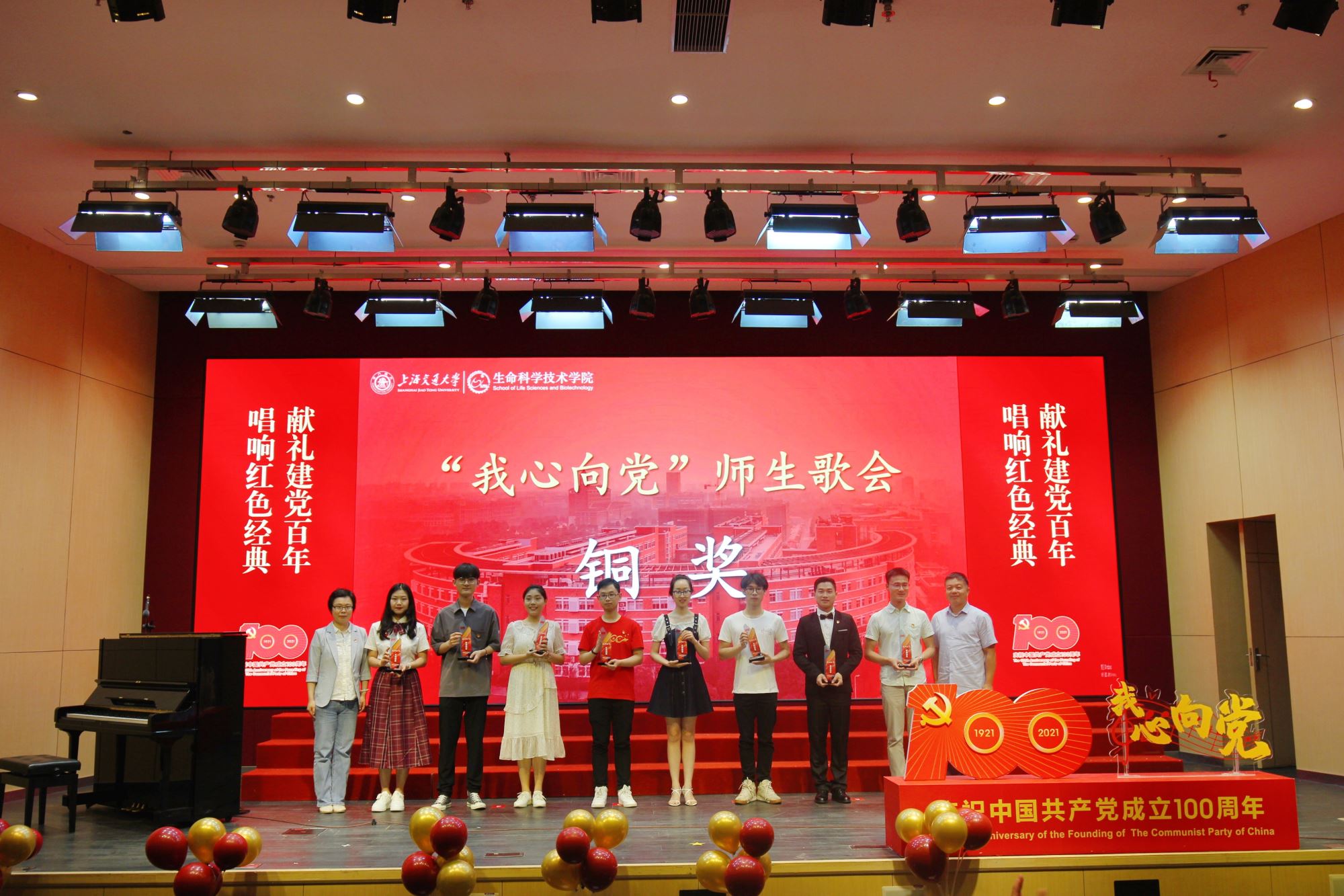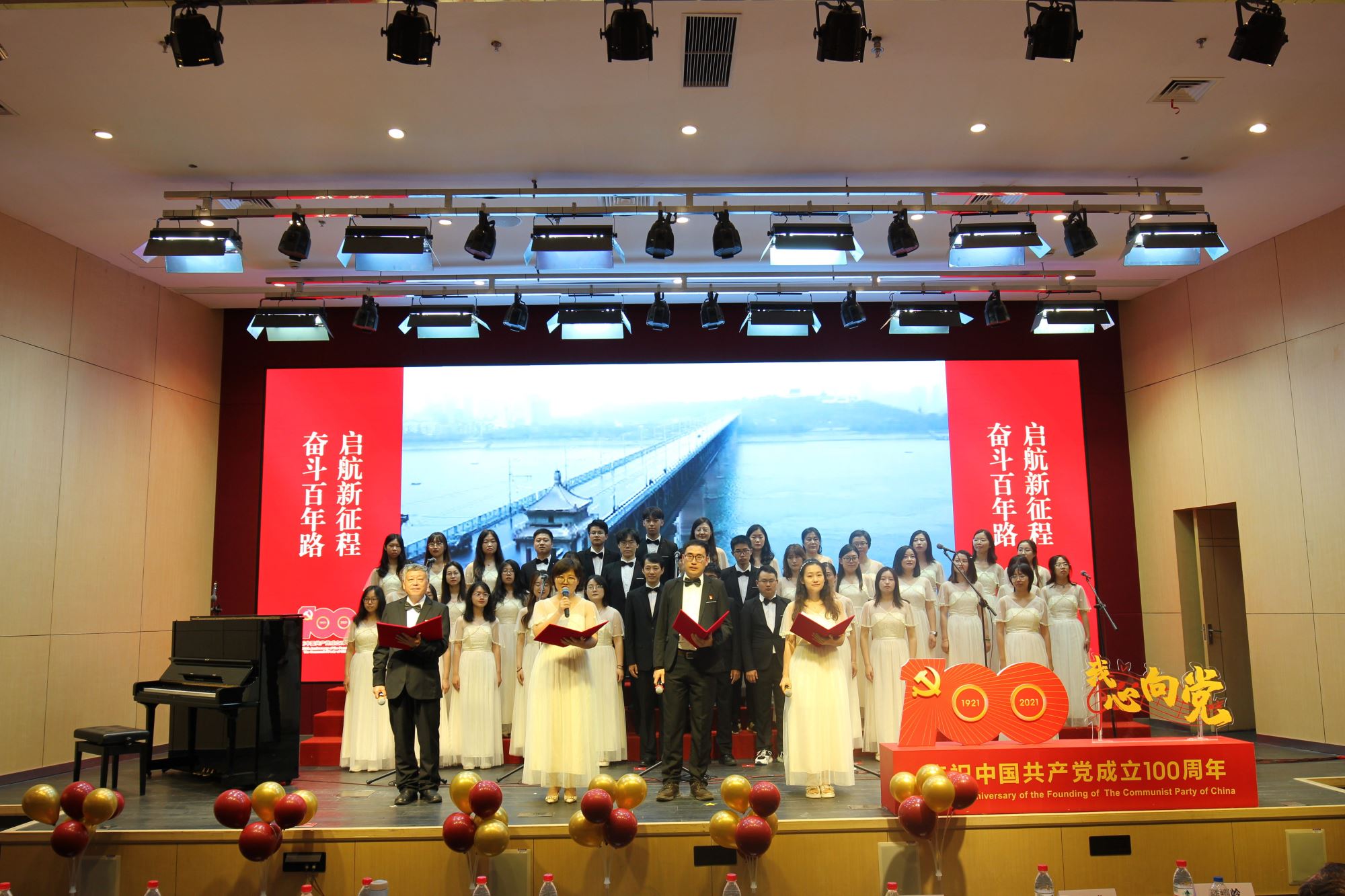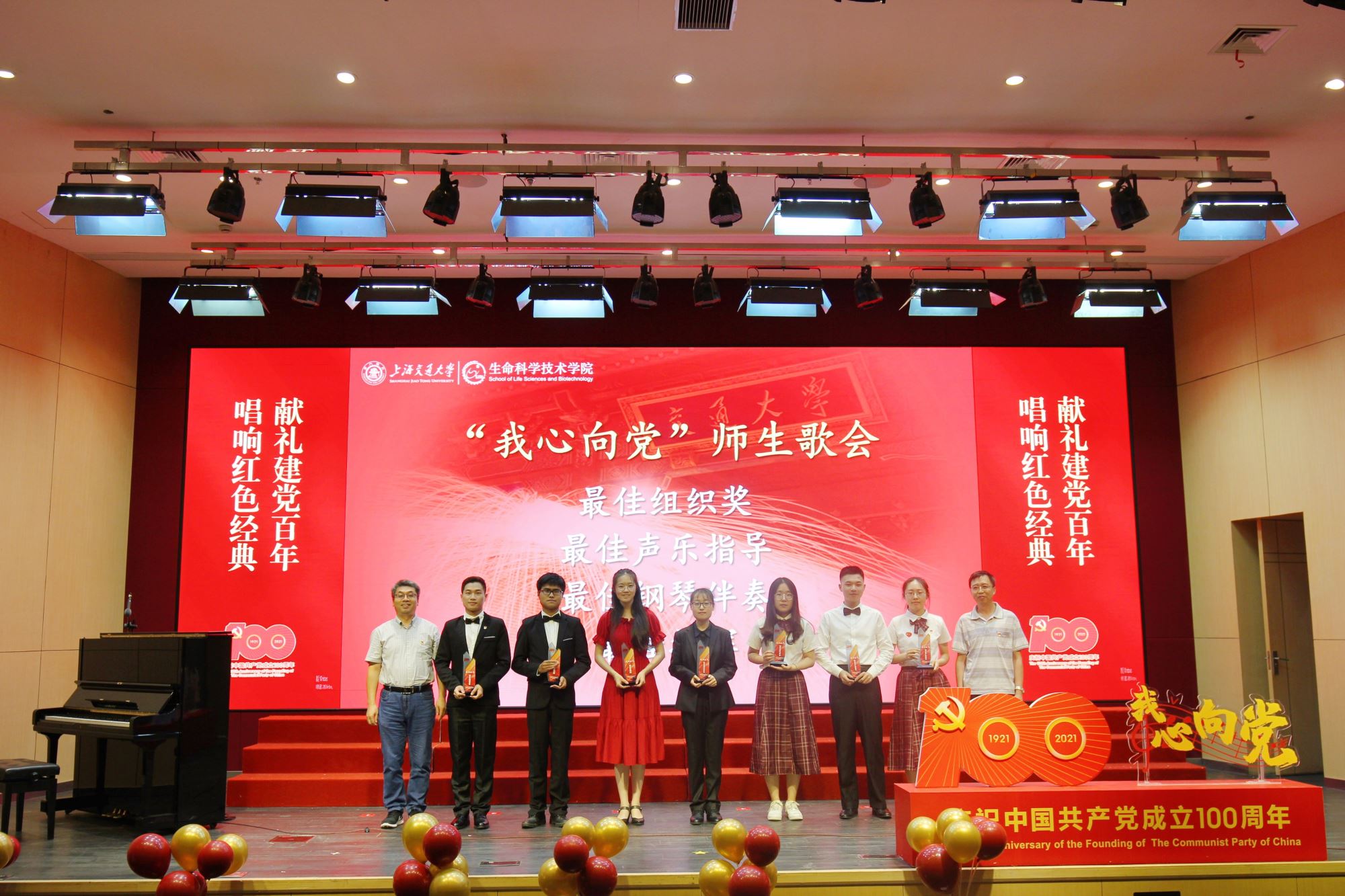 为隆重纪念中国共产党100周年华诞,热情讴歌中国共产党领导中国革命和建设取得的伟大成就,厚植师生爱党爱国情怀,营造富有激情、富有红韵的学院文化氛围,6月28日下午,必赢76net线路官网举办庆祝建党100周年“我心向党”师生歌会暨表彰大会。校党委常委、常务副校长丁奎岭,校党委常委、组织部部长仰颐,图书馆党委书记董玉山,妇委会副主任郑敏,校团委书记钱文韬,必赢76net线路官网党委书记嵇绍岭,常务副院长冯雁,副院长张晓君、林双君,党委副书记王鑫,党委委员张雪洪、白林泉,原常务副院长朱章玉,原党总支书记、退休教工党支部书记罗九甫,原党总支副书记、退休教工党支部副书记陆秀英、退休教工党支部委员潘建良,退休教工党支部许煜泉,歌会艺术指导王丽华等出席活动,学院师生共同唱响红色经典,抒发对党和祖国的深情热爱。