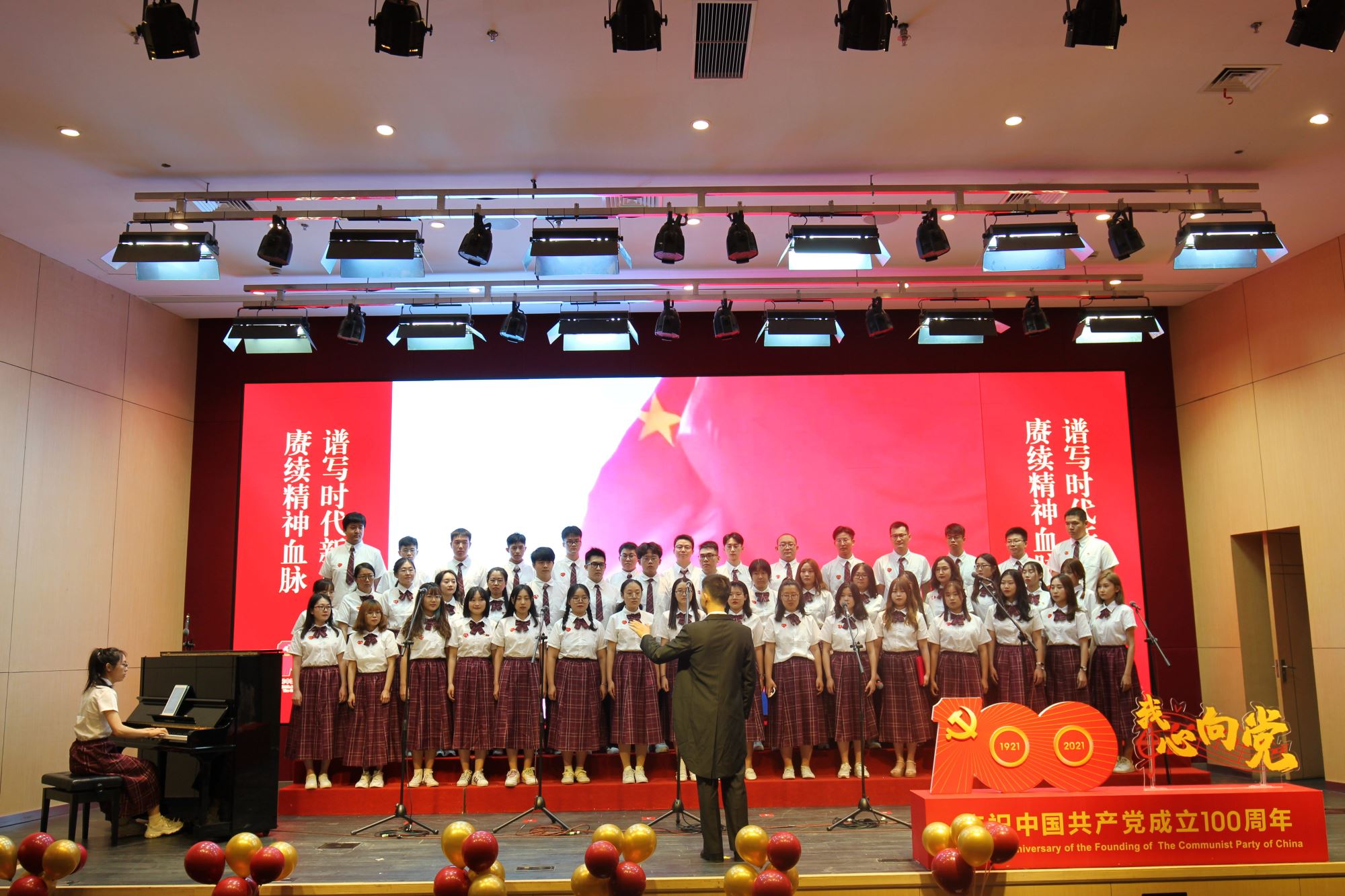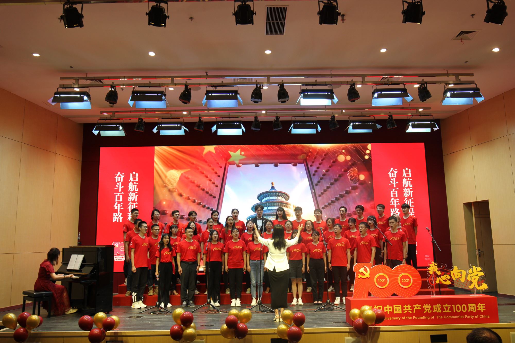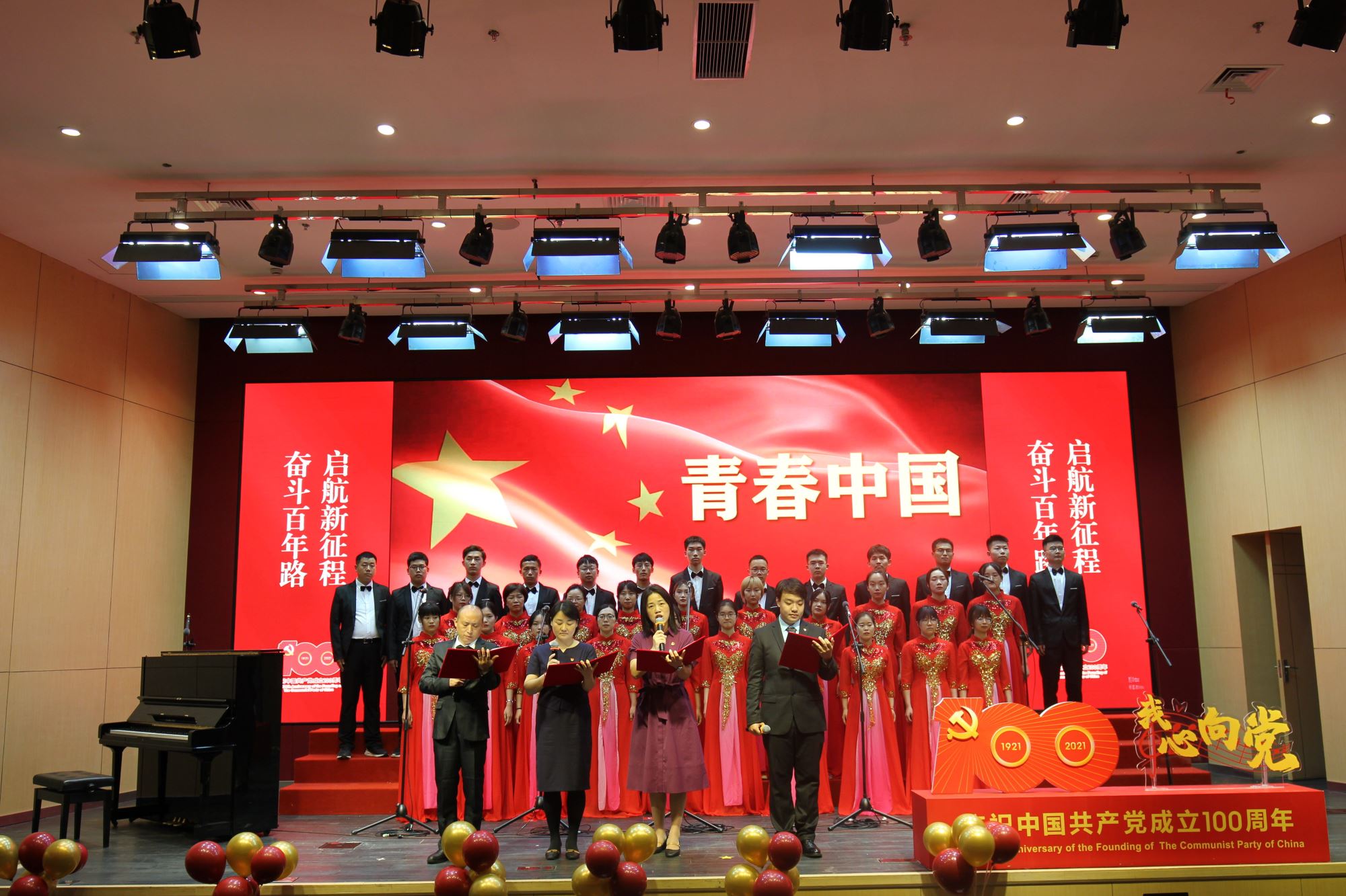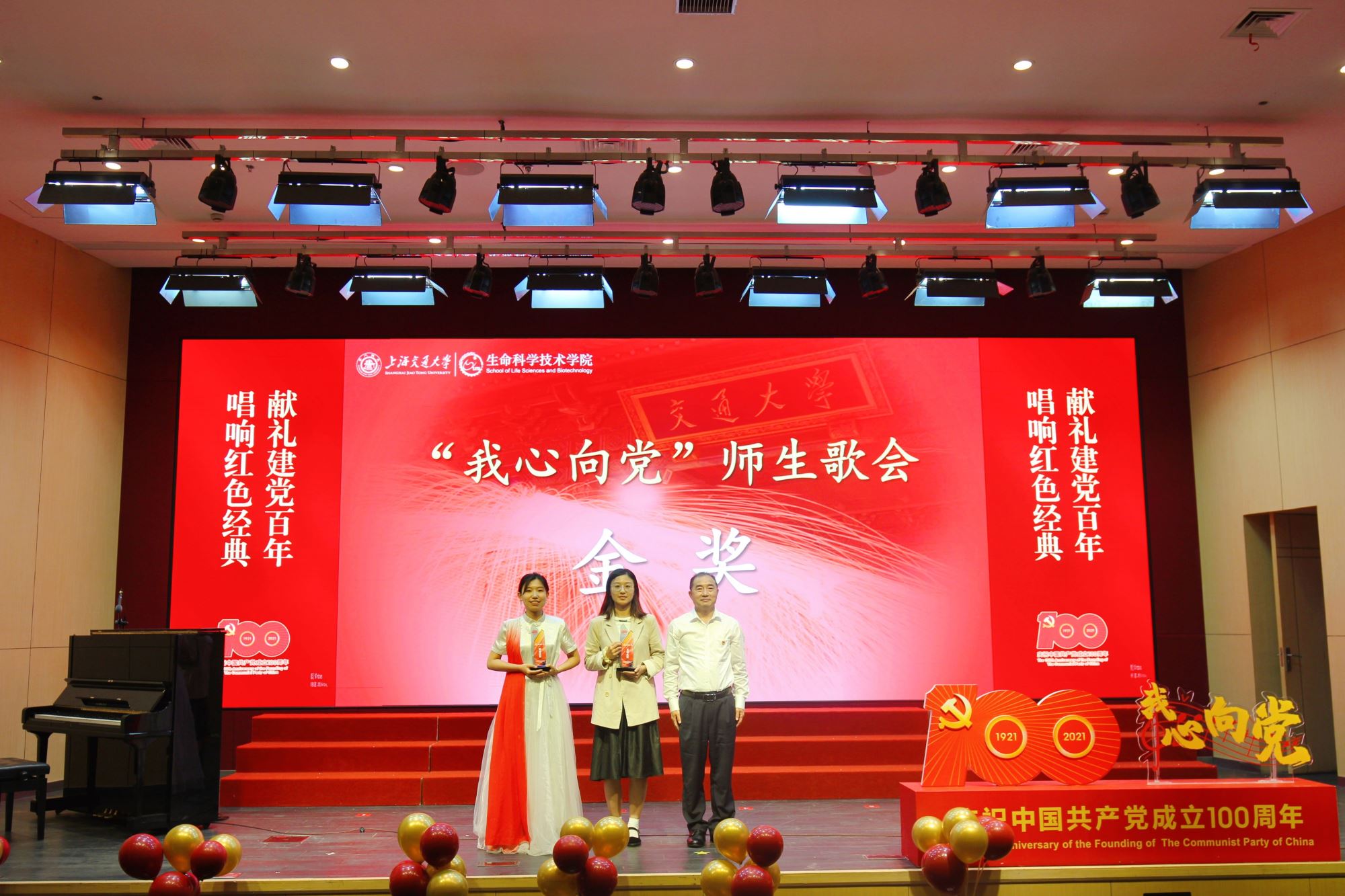 为隆重纪念中国共产党100周年华诞,热情讴歌中国共产党领导中国革命和建设取得的伟大成就,厚植师生爱党爱国情怀,营造富有激情、富有红韵的学院文化氛围,6月28日下午,必赢76net线路官网举办庆祝建党100周年“我心向党”师生歌会暨表彰大会。校党委常委、常务副校长丁奎岭,校党委常委、组织部部长仰颐,图书馆党委书记董玉山,妇委会副主任郑敏,校团委书记钱文韬,必赢76net线路官网党委书记嵇绍岭,常务副院长冯雁,副院长张晓君、林双君,党委副书记王鑫,党委委员张雪洪、白林泉,原常务副院长朱章玉,原党总支书记、退休教工党支部书记罗九甫,原党总支副书记、退休教工党支部副书记陆秀英、退休教工党支部委员潘建良,退休教工党支部许煜泉,歌会艺术指导王丽华等出席活动,学院师生共同唱响红色经典,抒发对党和祖国的深情热爱。
