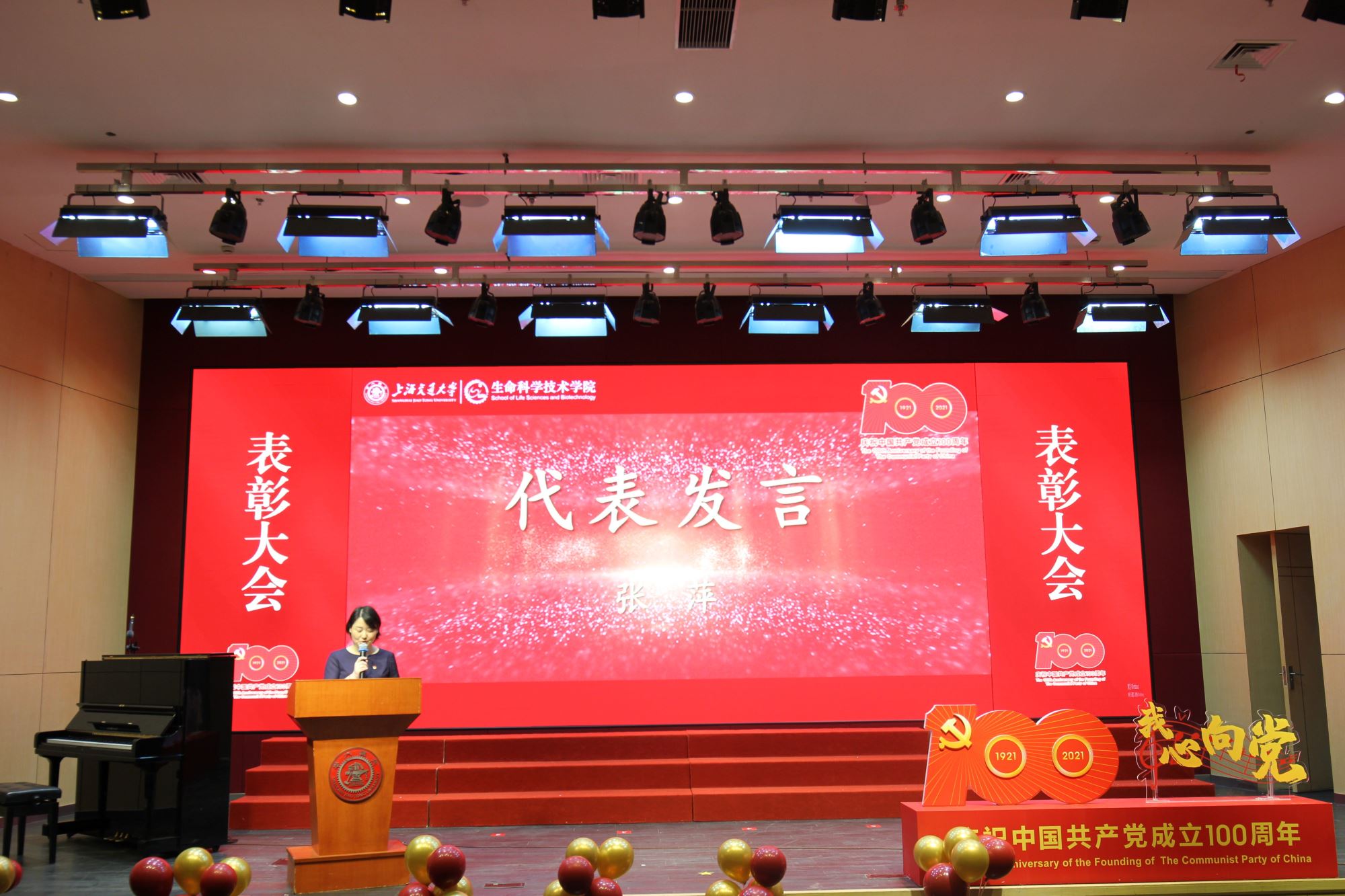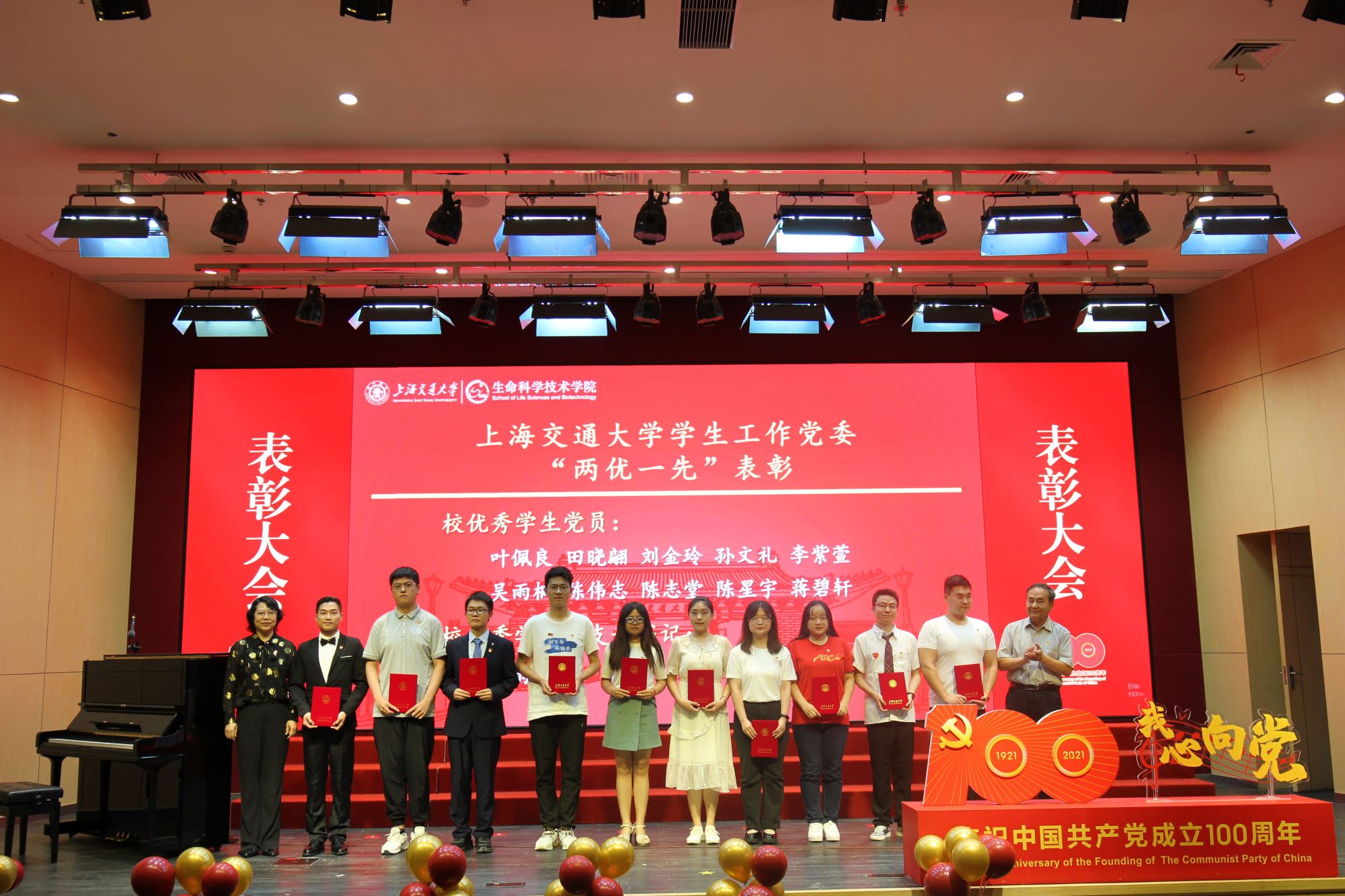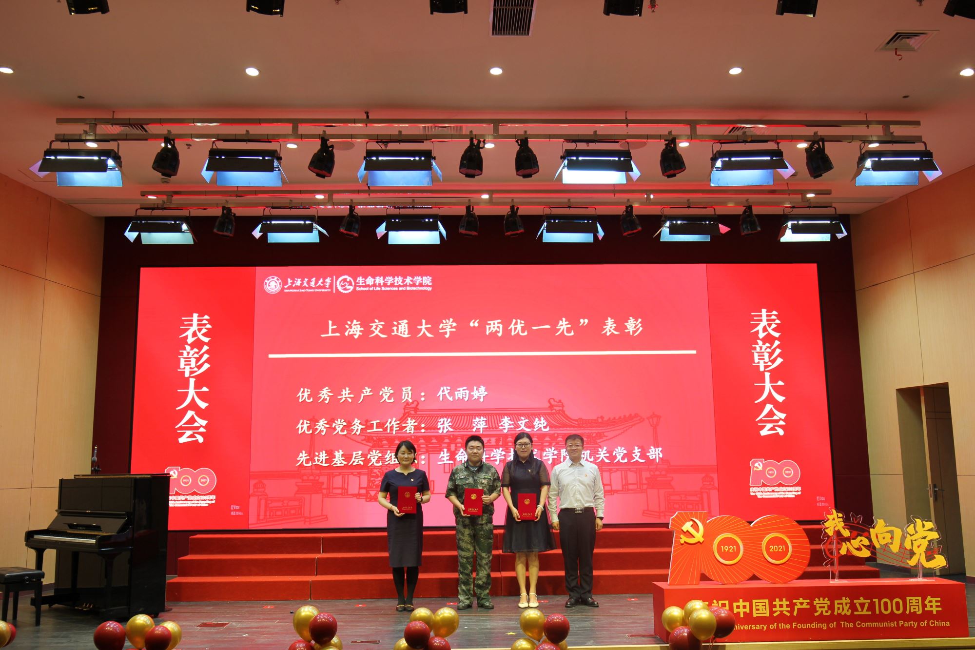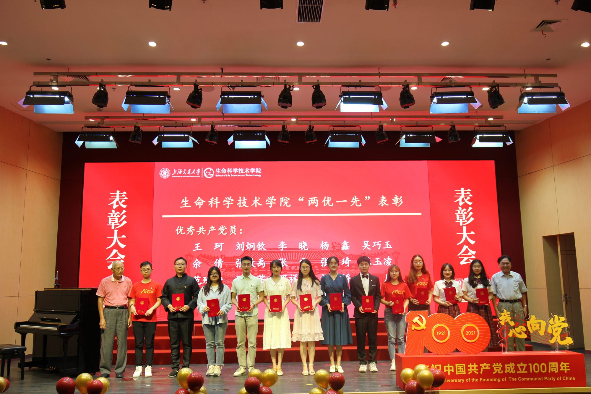 随着师生歌会演出结束,表彰大会环节在热烈而隆重气氛中拉开帷幕。大会表彰了白晓慧、王璐等30名学院优秀共产党员,李兴旺、李婧等6名优秀党务工作者,以及Bio-X 研究院教工党支部、生物信息学与生物统计学系教工党支部、微生物科学系教工党支部、Bio-X研究院研究生第二党支部、生物化学与分子生物学系研究生党支部5个先进基层党组织。