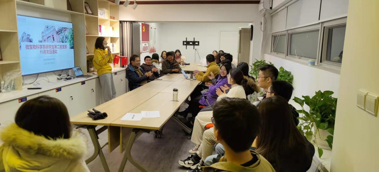 为深入学习十九届六中全会精神,从党的百年奋斗历程中汲取智慧和前行力量,2021年11月23日,必赢76net线路官网微生物科学系研究生第二党支部在生科院“党员之家”开展以“学习十九届六中全会精神,争做新时代先锋模范党员”为主题的党日活动。本次党日活动由支部书记祁晓妍同志主持,支部党员同志、积极分子和入党申请人共28人参加。