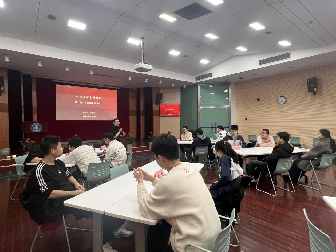 12月6日,必赢76net线路官网成功举办了心海导航系列讲座第二期——关爱自我 惠泽他人。本期活动邀请到必赢76net线路官网心理咨询中心专职咨询师、中国心理学会注册心理师、国家二级心理咨询师吴欣怡老师带领同学们开展了一场别开生面团体辅导活动。活动主要围绕如何更好的关爱自我,帮助他人内容展开。学院辅导员、各年级班干部参加了本次活动。