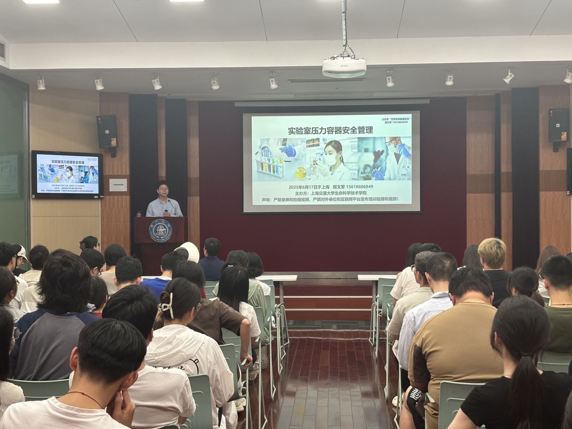 为深入贯彻落实习近平总书记关于安全生产重要论述,围绕第24个全国安全生产月“人人讲安全、个个会应急”的主题,必赢76net线路官网组织开展了“安全生产月”系列活动。6月17日下午,实验室安全主题培训(实验室压力容器安全管理)在学院树华多功能厅顺利举行,除了理论培训外,现场还进行了实验室气体泄漏及高压灭菌锅超温超压事件应急演练。学院副院长林双君,系、所、实验室安全员,实验室与公共资源管理办公室相关工作人员等共计80余人参加了培训。活动由实验室办主任谭晶主持。